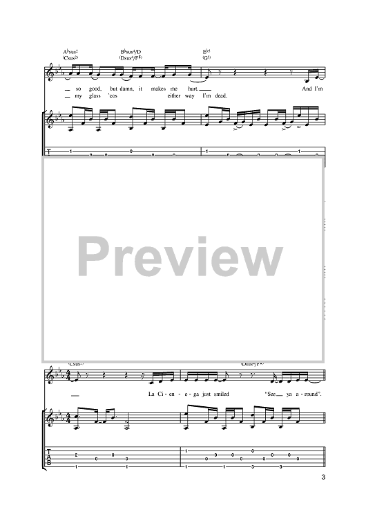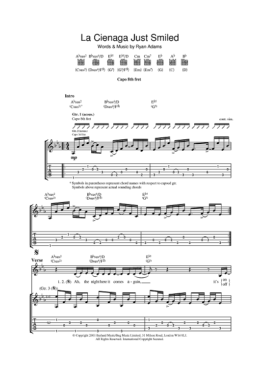 Digital Sheet Music for La Cienega Just Smiled by Ryan Adams scored for Guitar Tab; id:384196