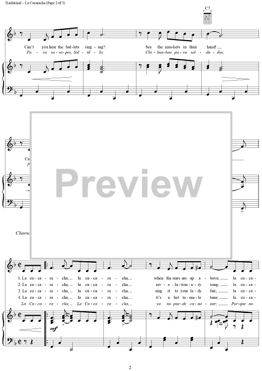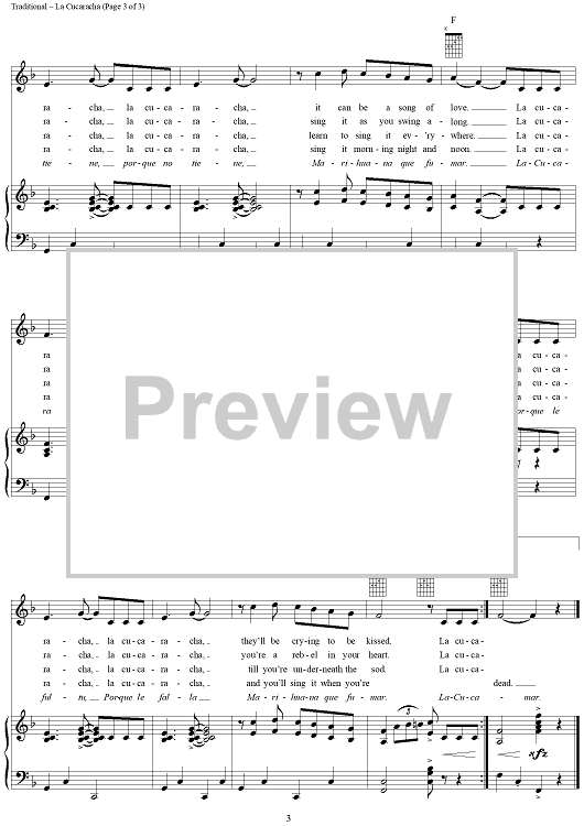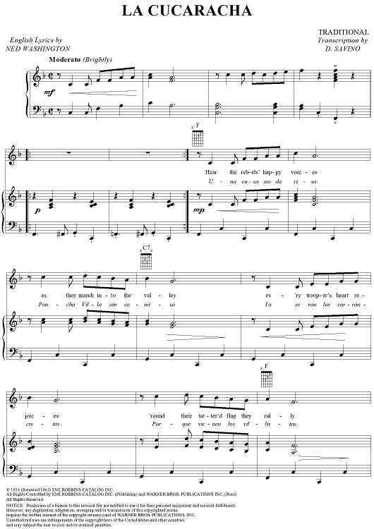 Digital Sheet Music for La Cucaracha by D. Savino, Traditional scored for Piano/Vocal/Chords; id:124241