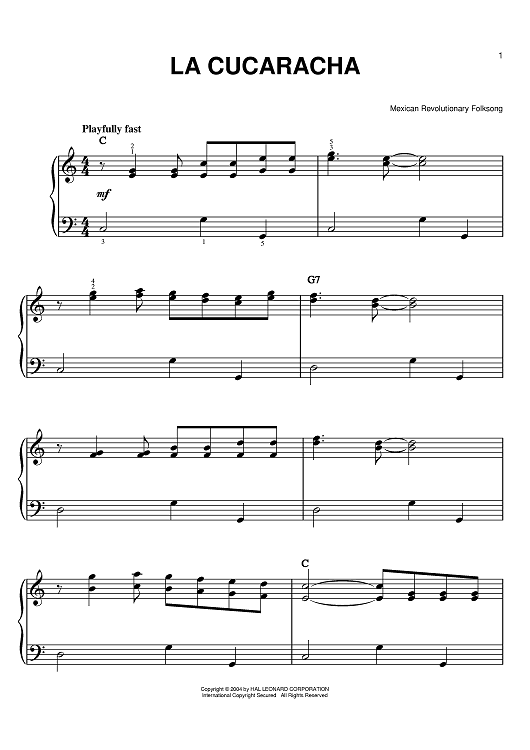 Digital Sheet Music for La Cucaracha by scored for Easy Piano; id:373851