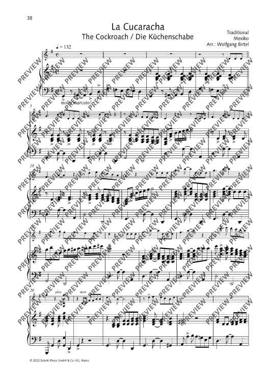 Digital Sheet Music for La Cucaracha by Wolfgang Birtel scored for Violin And Piano; id:497400