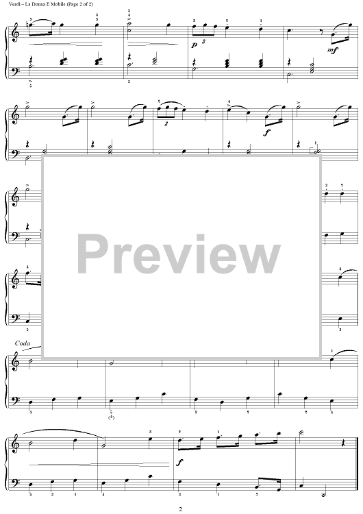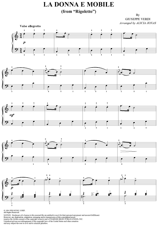 Digital Sheet Music for La donna è mobile (from "Rigoletto") by Giuseppe Verdi, Alicia Jonas scored for Piano Solo; id:264275