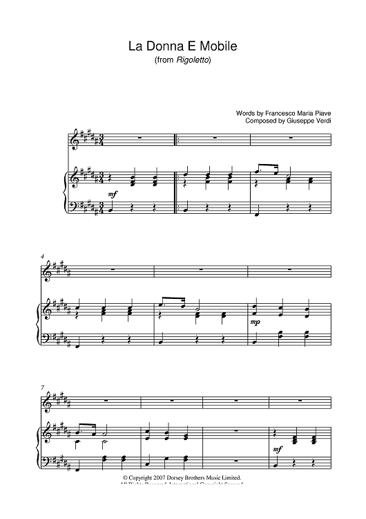Digital Sheet Music for La Donna E Mobile (from Rigoletto) by Giuseppe Verdi, Francesco Maria Piave, Luciano Pavarotti scored for Piano/Vocal/Chords; id:401877
