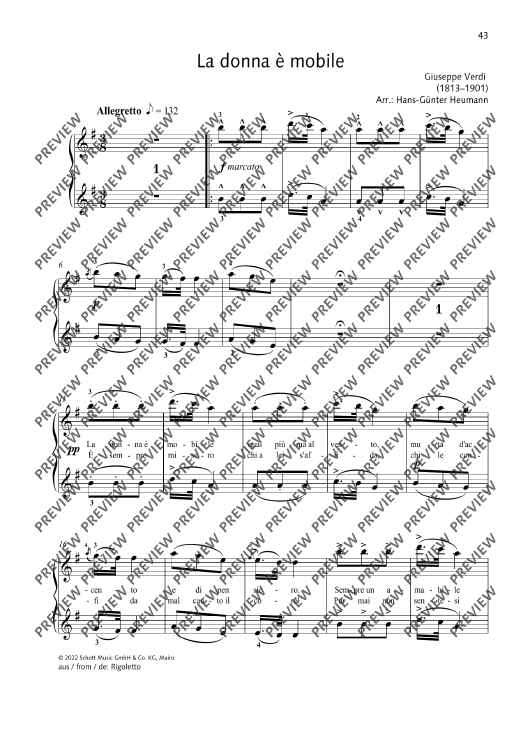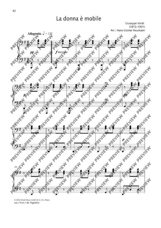 Digital Sheet Music for La Donna è Mobile by Giuseppe Fortunino Francesco Verdi, Hans-Guenter Heumann scored for Piano (4 Hands); id:497312