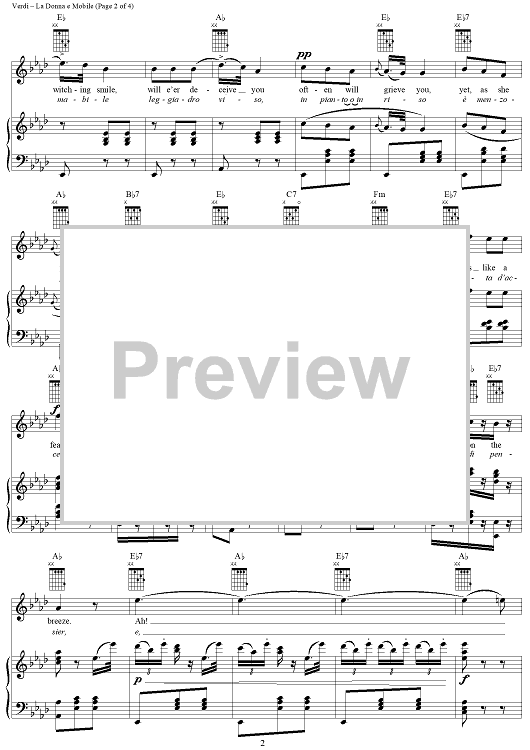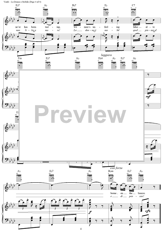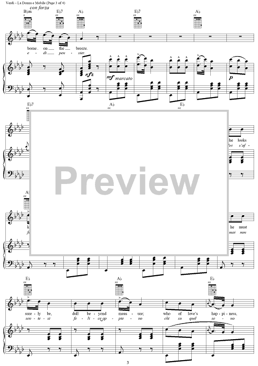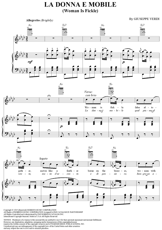 Digital Sheet Music for La donna è mobile (Woman Is Fickle), from "Rigoletto" by Giuseppe Verdi scored for Piano/Vocal/Chords; id:265069