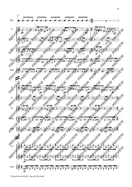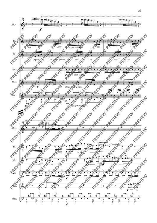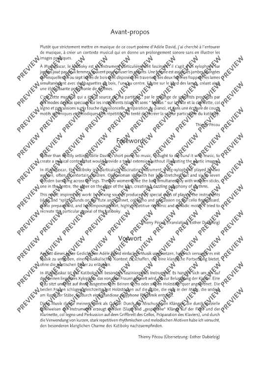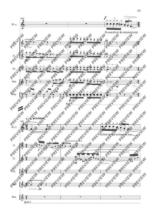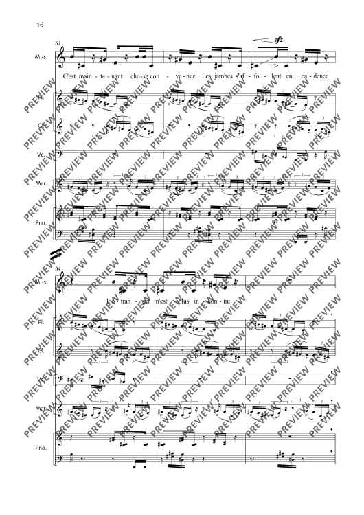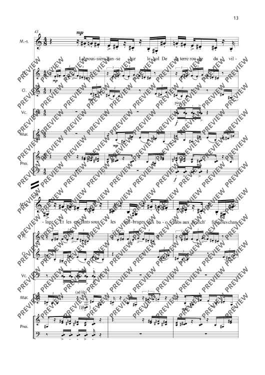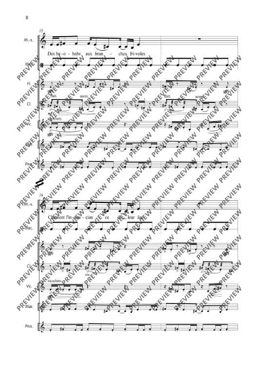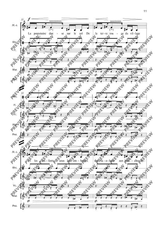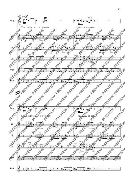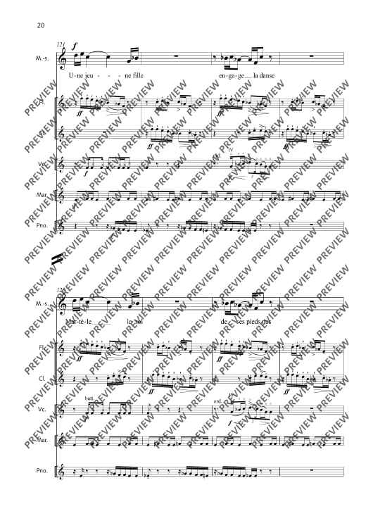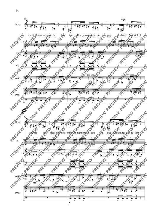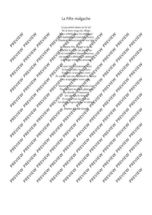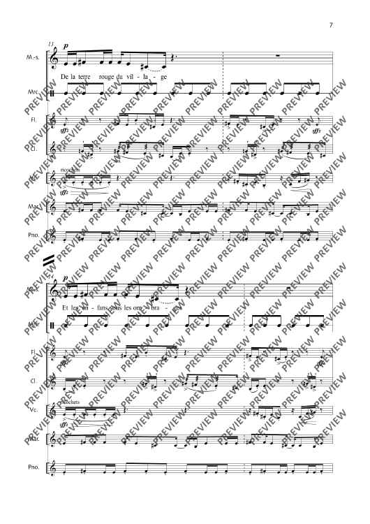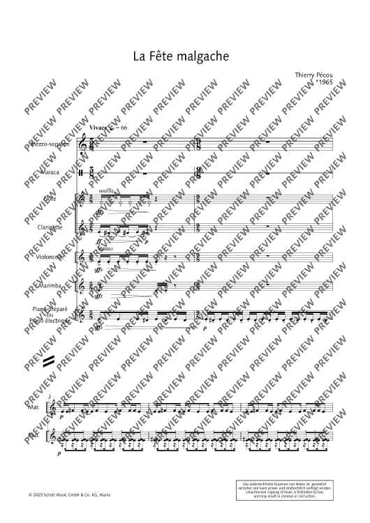 Digital Sheet Music for La Fête malgache - Score and Parts by Thierry Pécou scored for Mezzo-soprano, Flute, Clarinet, Cello, Percussion And Piano; id:508050