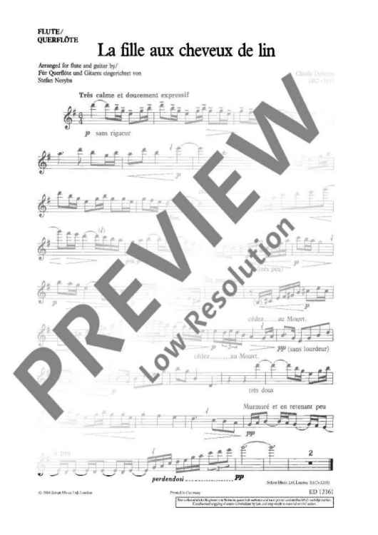 Digital Sheet Music for La Fille aux cheveux de lin by Claude Debussy, Stefan Nesyba scored for Flute And Guitar; id:474510