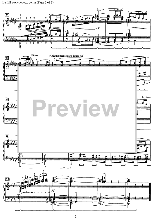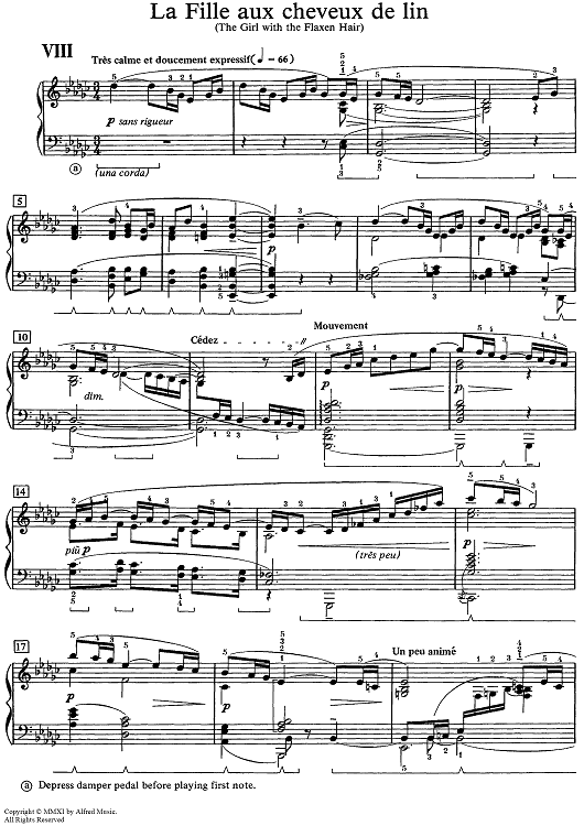 "La Fille aux cheveux de lin (The Girl with the Flaxen Hair)" Sheet Music by Claude Debussy