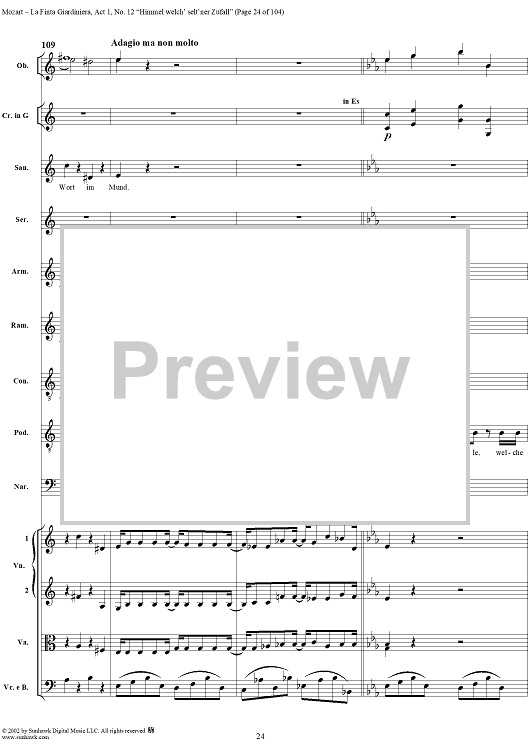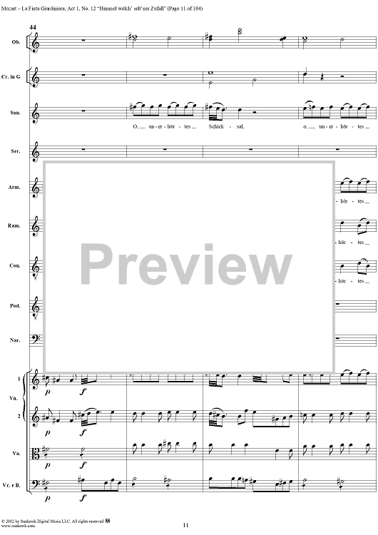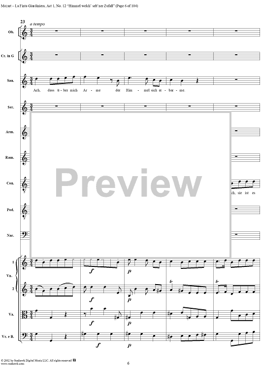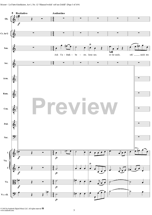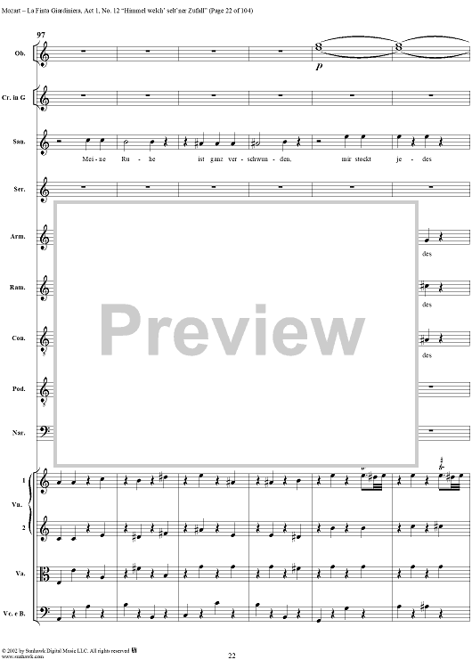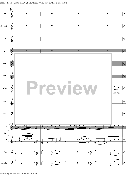 Digital Sheet Music for La Finta Giardiniera, Act 1, No. 12 "Himmel welch' selt'ner Zufall" (Finale, Septet) - Full Score by Wolfgang Amadeus Mozart scored for Soli/SATB/Orchestra; id:291073
