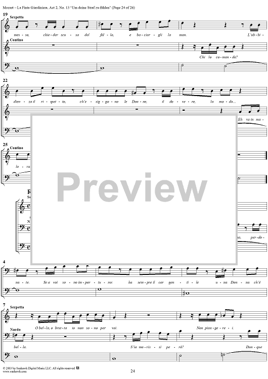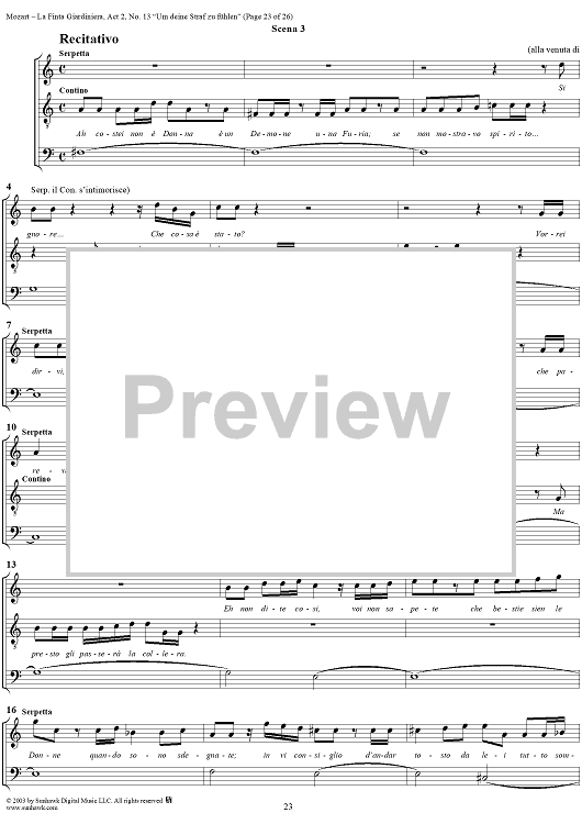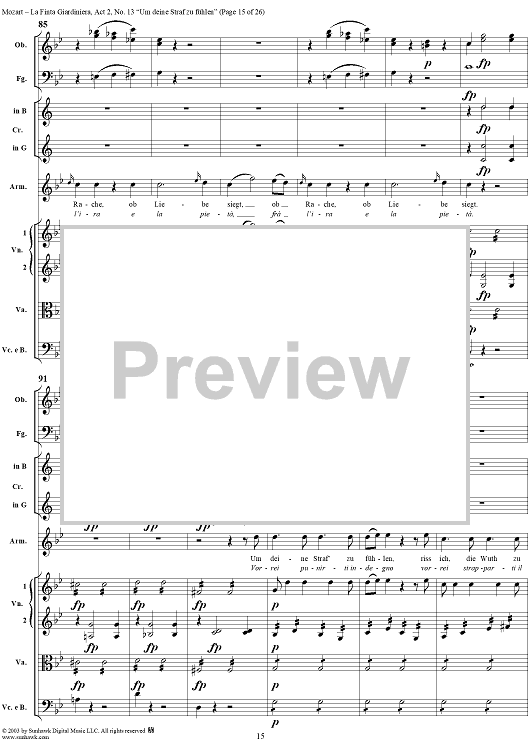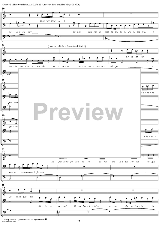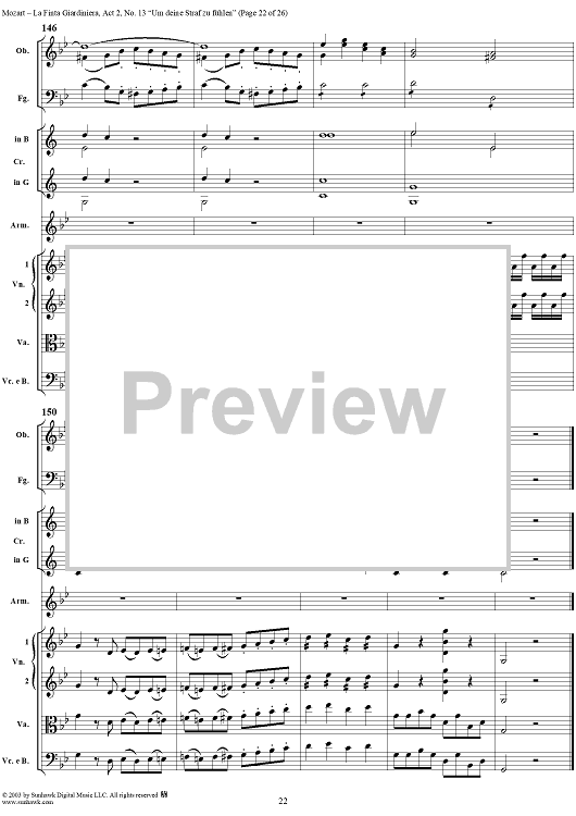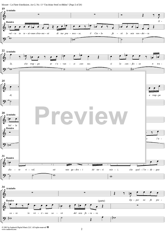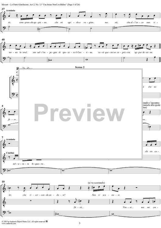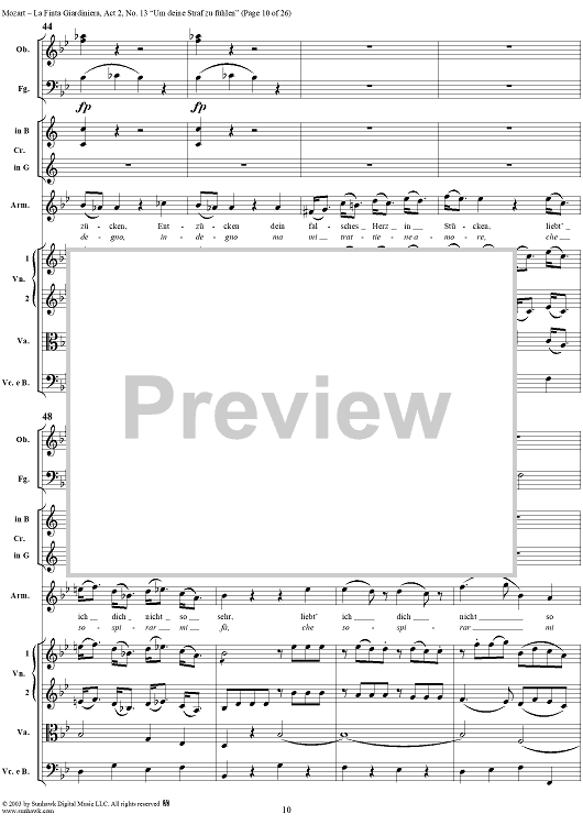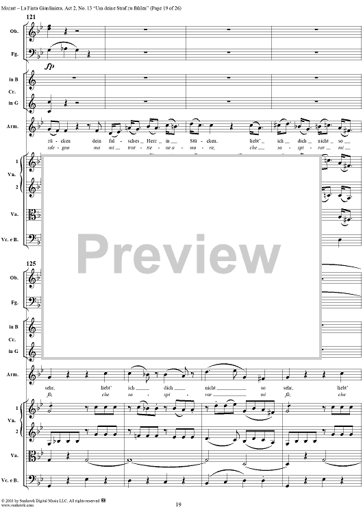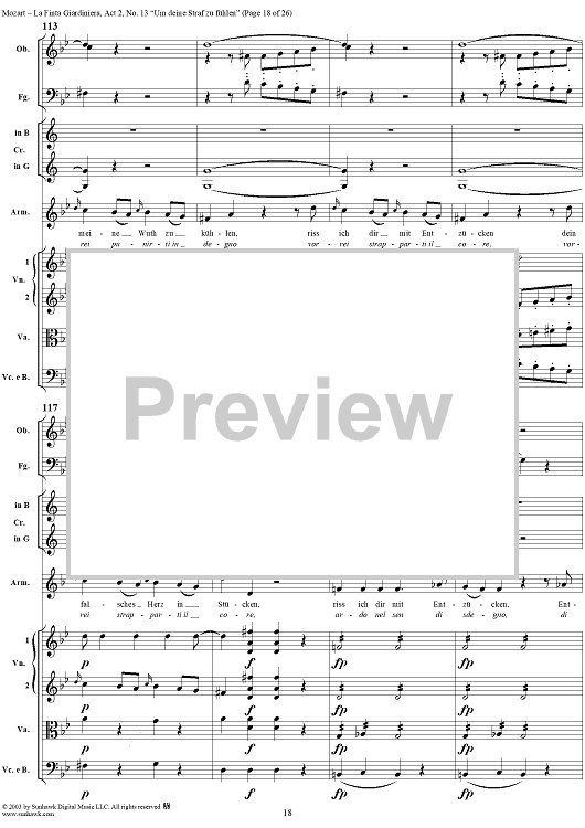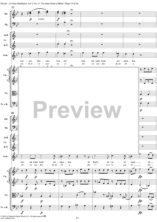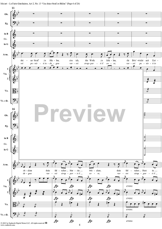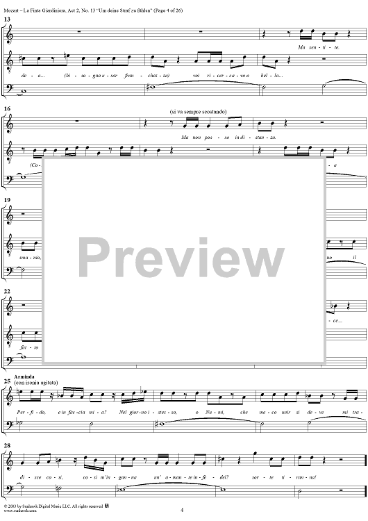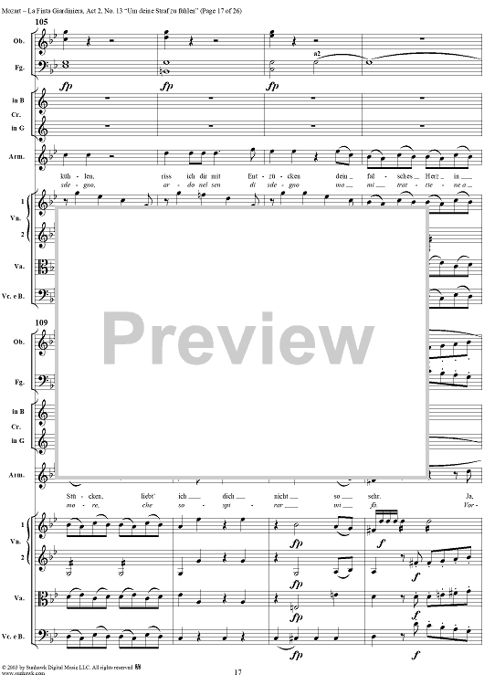 Digital Sheet Music for La Finta Giardiniera, Act 2, No. 13 "Um deine Straf zu fühlen" (Aria) - Full Score by Wolfgang Amadeus Mozart scored for Soli/SATB/Orchestra; id:291074