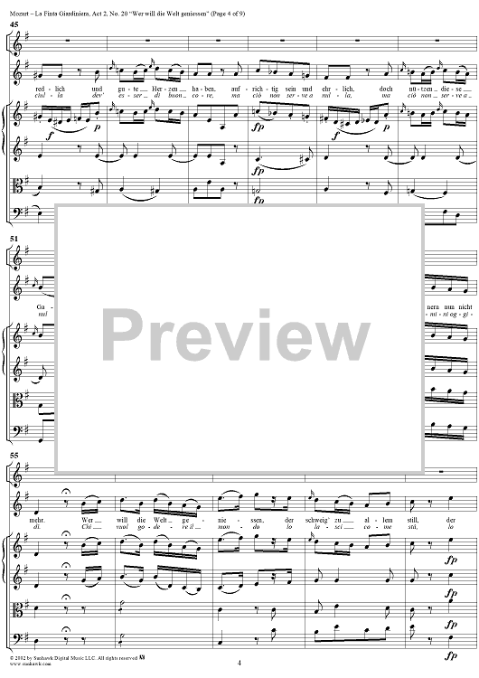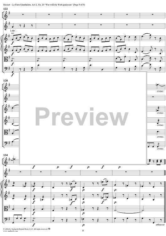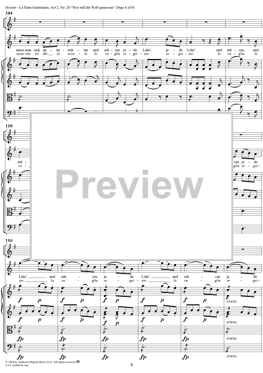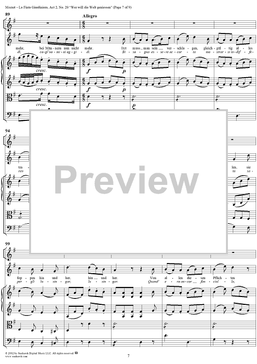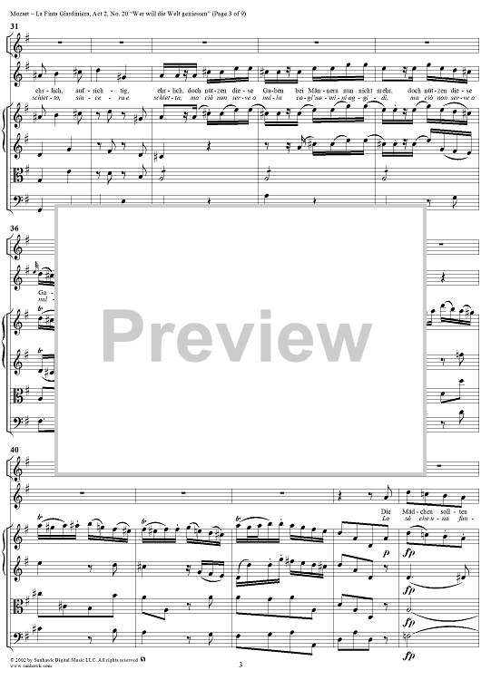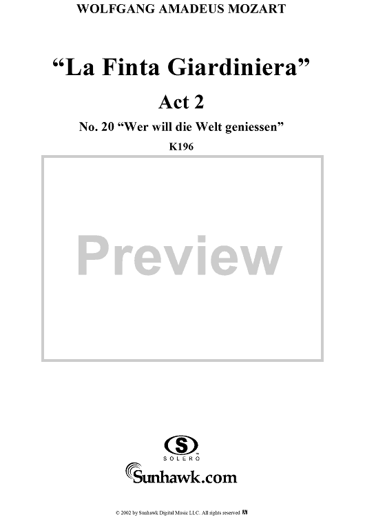 Digital Sheet Music for La Finta Giardiniera, Act 2, No. 20 "Wer will die Welt geniessen" (Aria) - Full Score by Wolfgang Amadeus Mozart scored for Soli/SATB/Orchestra; id:291088