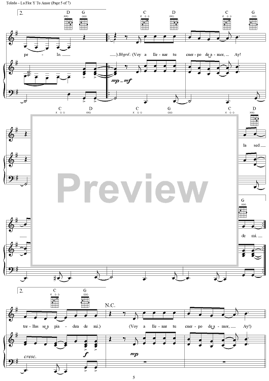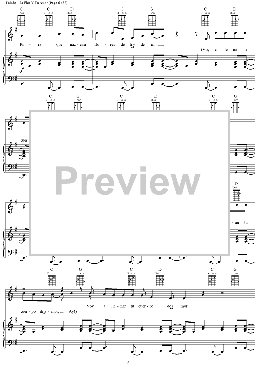 Digital Sheet Music for La Flor Tu Amor by Gloria Estefan, René Toledo scored for Piano/Vocal/Chords; id:286379