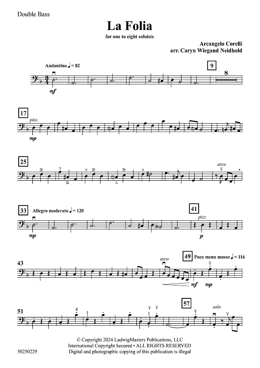Digital Sheet Music for La Folia - Double Bass by Arcangelo Corelli, Caryn Wiegand Neidhold scored for Orchestra; id:504606