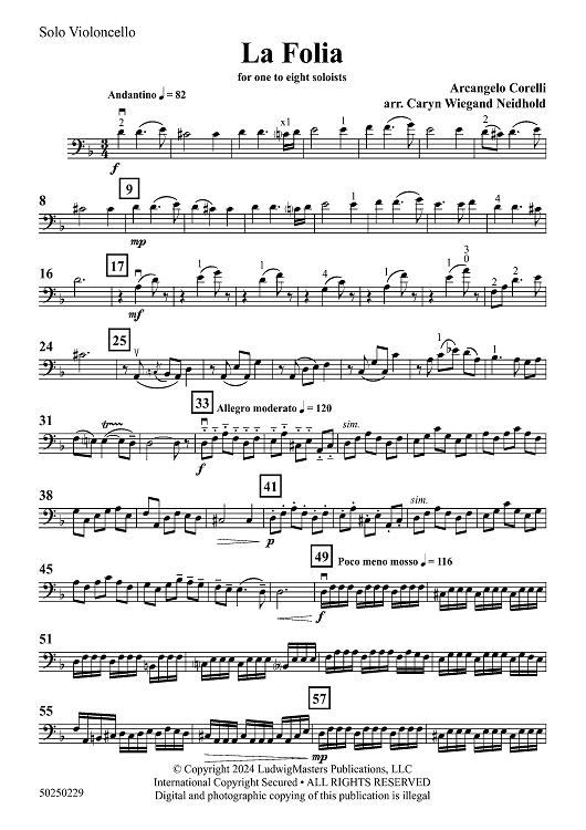 Digital Sheet Music for La Folia - Solo Violoncello by Arcangelo Corelli, Caryn Wiegand Neidhold scored for Orchestra; id:504600