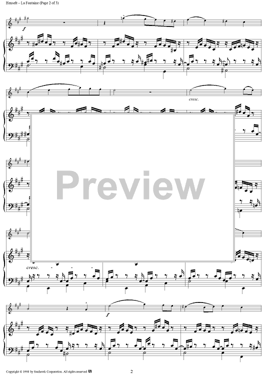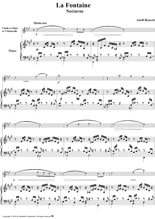 Digital Sheet Music for La Fontaine by A. Henselt scored for Flute or Violin/Piano; id:95320