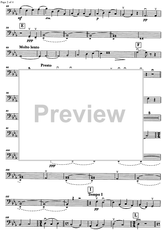 Digital Sheet Music for La gnot dai muarz (The night of the Dead) [set of parts] - Double Bass by Davide Liani scored for Soprano/Baritone/Narrator/Chamber Orchestra; id:351782