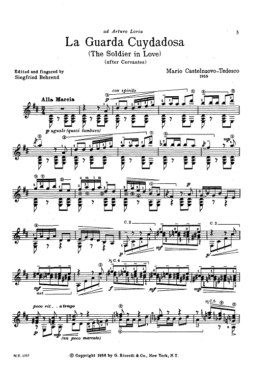 "La Guarda Cuydadosa" Sheet Music by Mario Castelnuovo-Tedesco