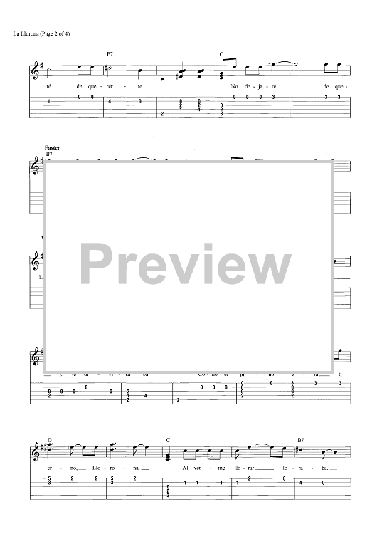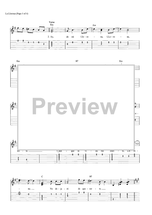 Digital Sheet Music for La Llorona - from COCO by Traditional Mexican Folk Song, Germaine Franco scored for Easy Guitar Tab/Vocal; id:466192