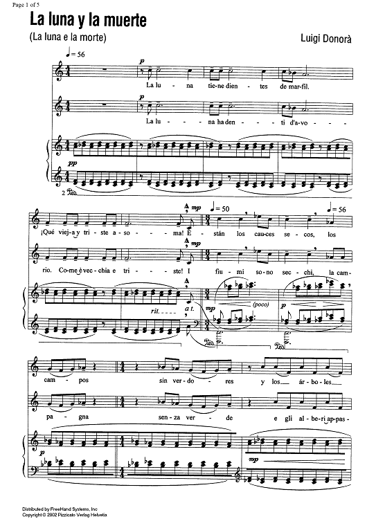 Digital Sheet Music for La luna y la muerte/La luna e la morte - Score by , Luigi Donorà scored for Soprano or Tenor/Piano; id:349947