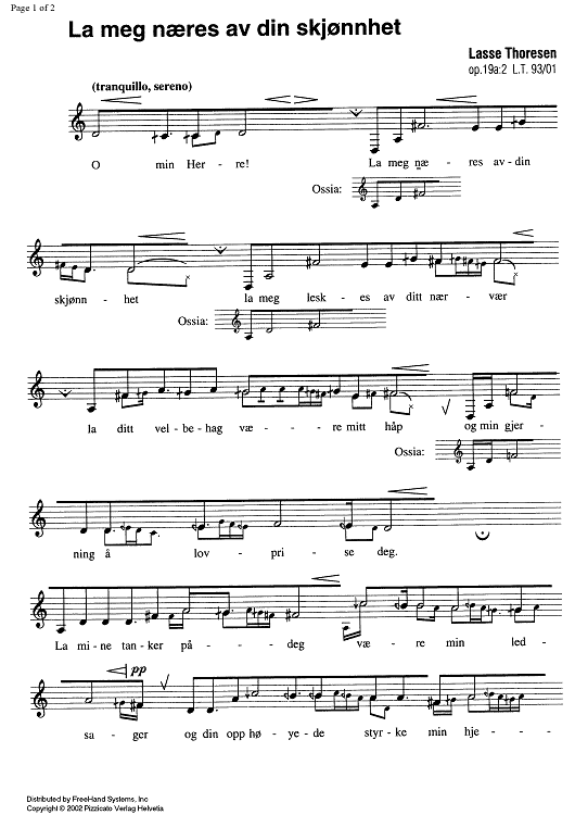 Digital Sheet Music for La meg naeres av di skoennhet (No. 2 from Helligkvad Op.19a) - Score and Parts by , Lasse Thoresen scored for Mezzo-soprano or Baritone; id:349777