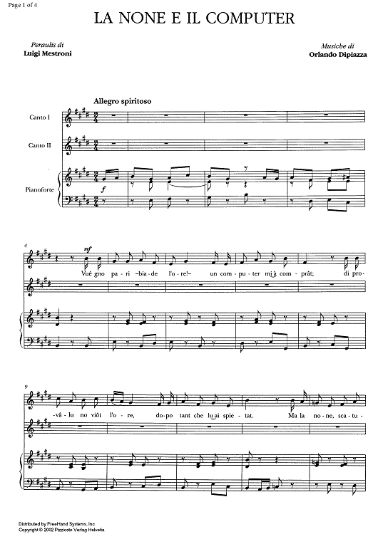 "La none e il computer" Sheet Music by Orlando Dipiazza