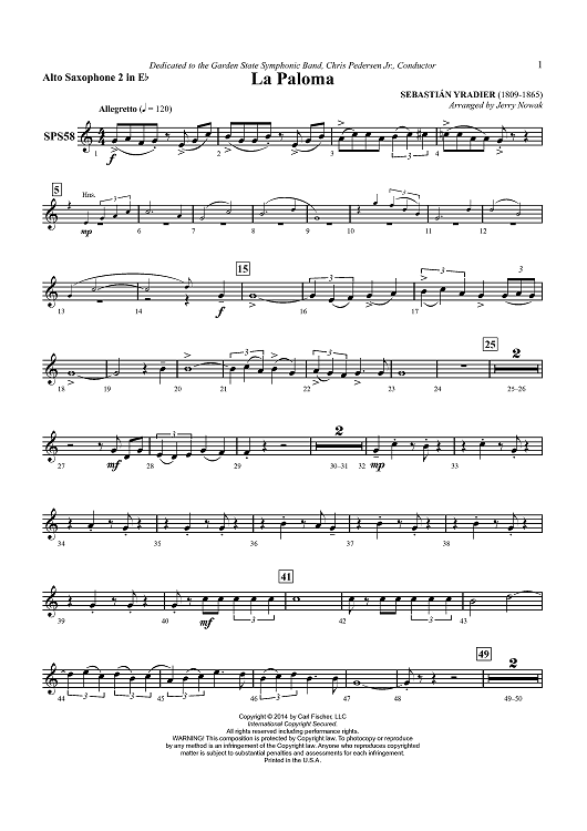 Digital Sheet Music for La Paloma - Alto Saxophone 2 by Sebastián Yradier, Jerry Nowak scored for Concert Band; id:453655