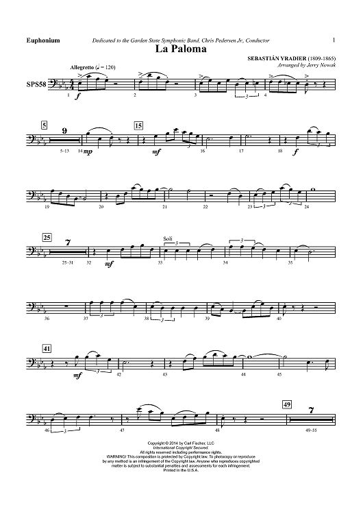 Digital Sheet Music for La Paloma - Euphonium BC by Sebastián Yradier, Jerry Nowak scored for Concert Band; id:453668