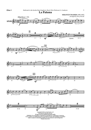 Digital Sheet Music for La Paloma - Oboe 1 by Sebastián Yradier, Jerry Nowak scored for Concert Band; id:453646