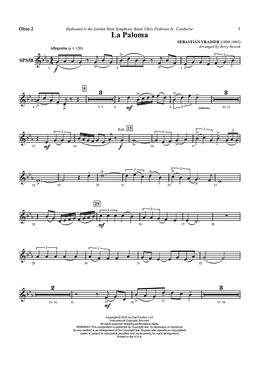 Digital Sheet Music for La Paloma - Oboe 2 by Sebastián Yradier, Jerry Nowak scored for Concert Band; id:453647