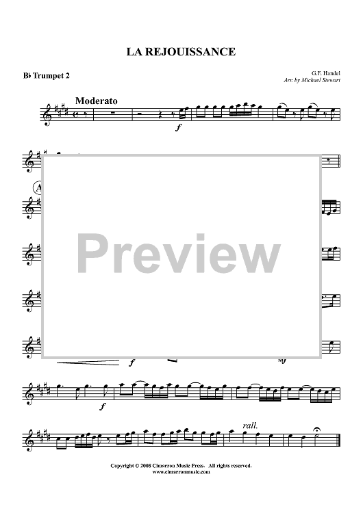 Digital Sheet Music for La Rejouissance - Trumpet 2 in Bb by , George Frideric Handel, Michael Stewart scored for Brass Ensemble; id:417479