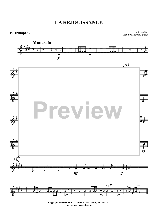 Digital Sheet Music for La Rejouissance - Trumpet 4 in Bb by , George Frideric Handel, Michael Stewart scored for Brass Ensemble; id:417481