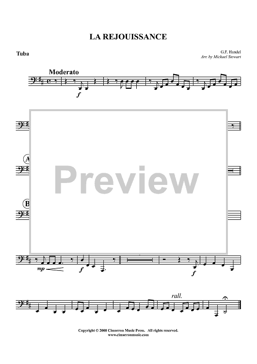 Digital Sheet Music for La Rejouissance - Tuba by , George Frideric Handel, Michael Stewart scored for Brass Ensemble; id:417487