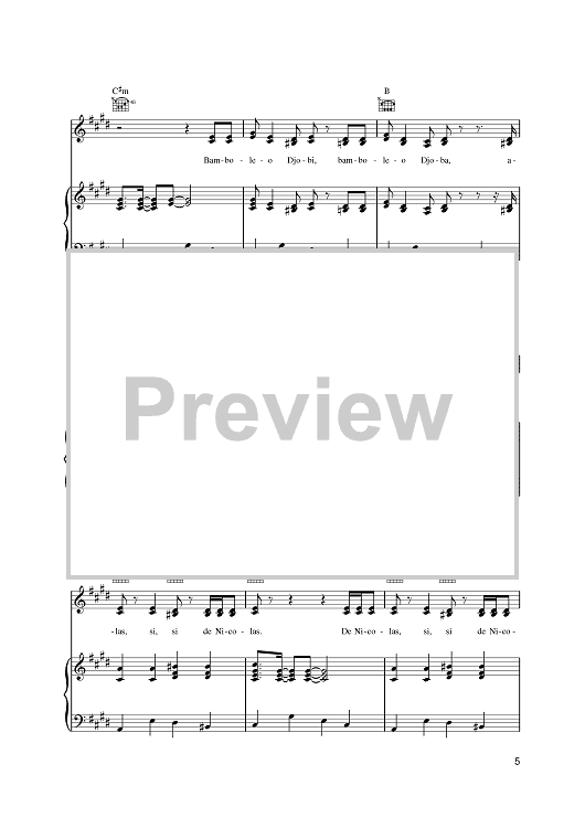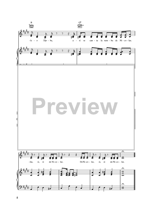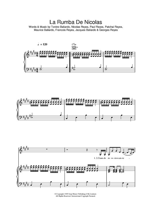 Digital Sheet Music for La Rumba De Nicolas by Jacques Baliardo, Maurice Baliardo, Tonino Baliardo, Gipsy Kings, Francois Reyes, Georges Reyes, Nicolas Reyes, Patchai Reyes, Paul Reyes scored for Piano/Vocal/Chords; id:395856
