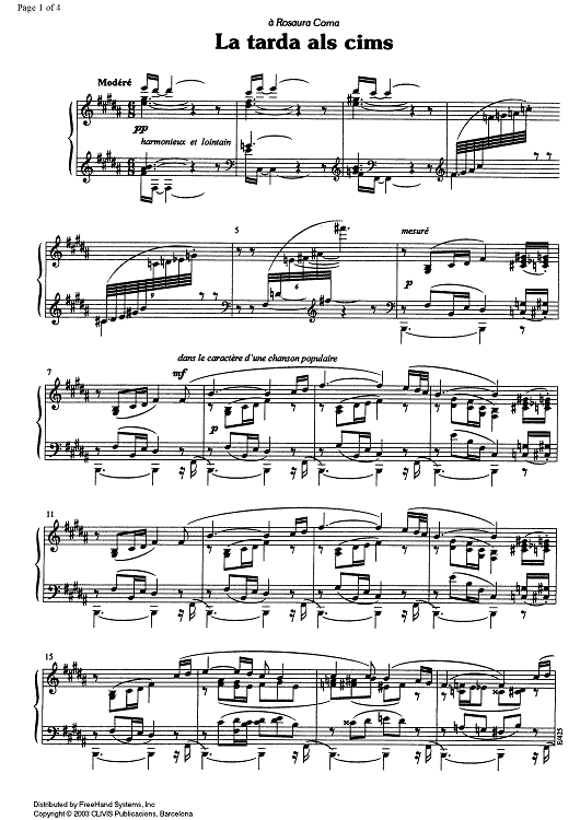 Digital Sheet Music for La tarda als cims (from De les terres altes) - Piano by , Xavier Gols i Soler scored for Piano Solo; id:353479
