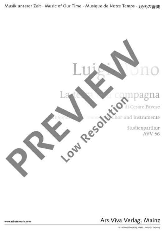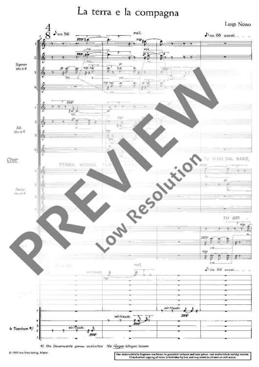 Digital Sheet Music for La terra e la compagna - Full Score by Luigi Nono scored for Mixed Choir (6s 6a 6t 6b) And Orchestra; id:488992