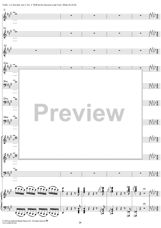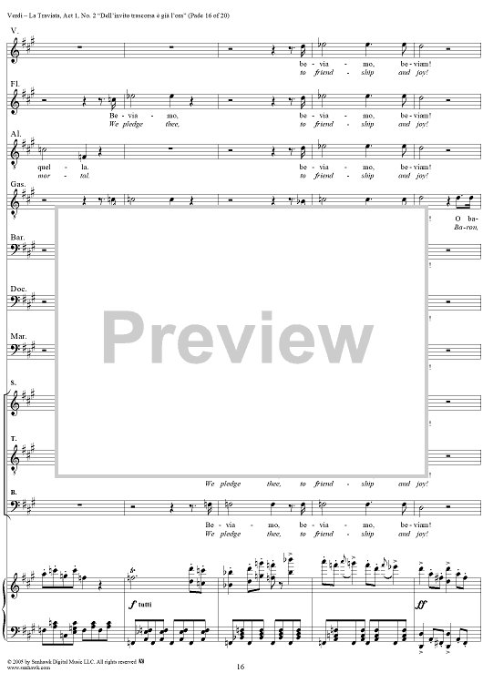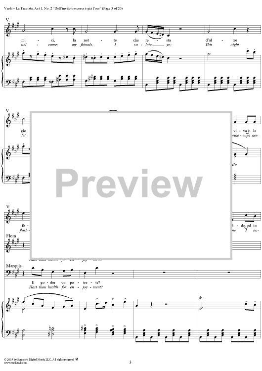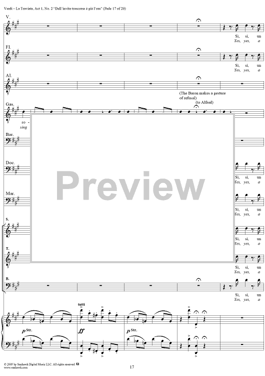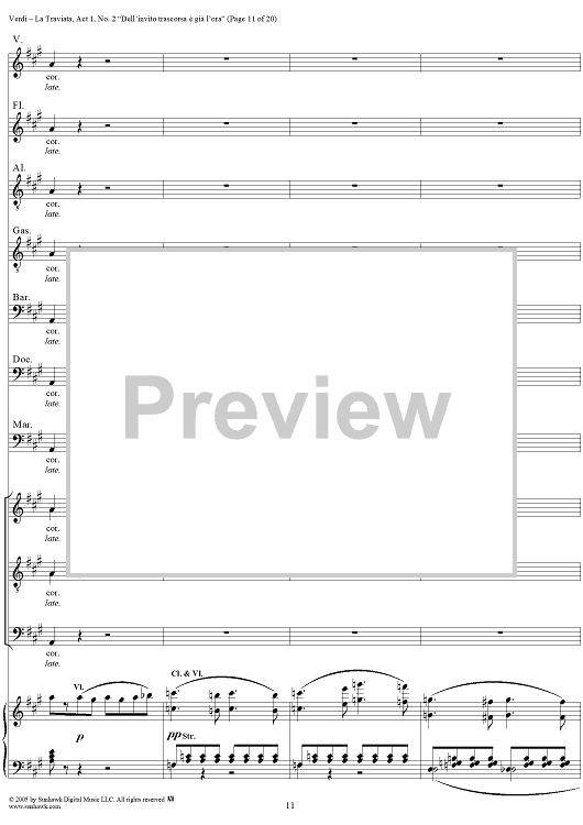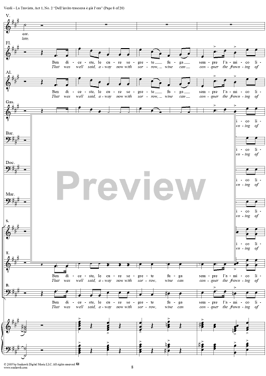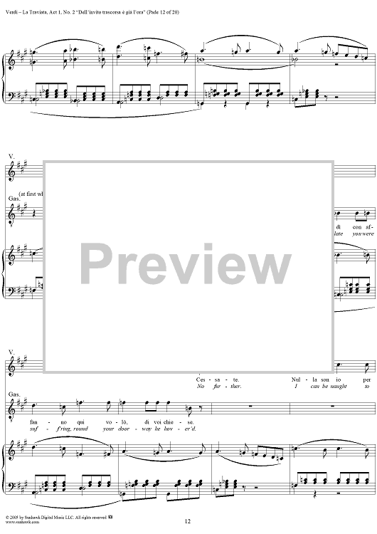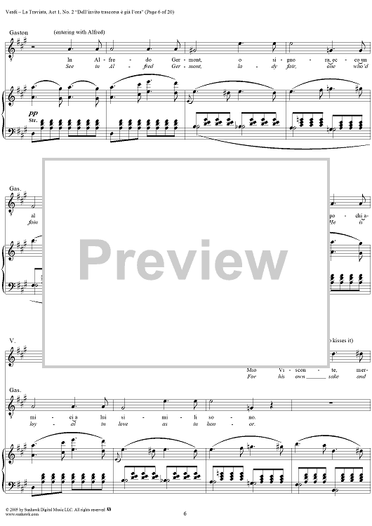 Digital Sheet Music for La Traviata, Act 1, No. 2, Introduction. "Dell'invito trascorsa è già l'ora" by Giuseppe Verdi scored for Vocal Score; id:304471