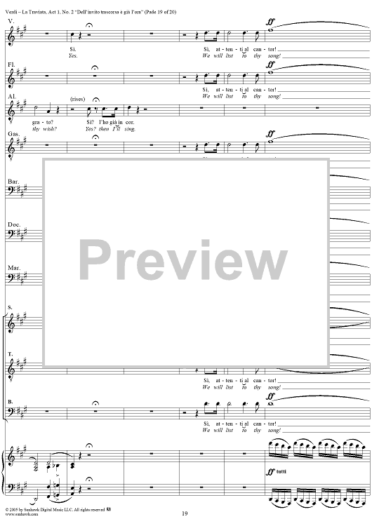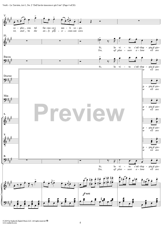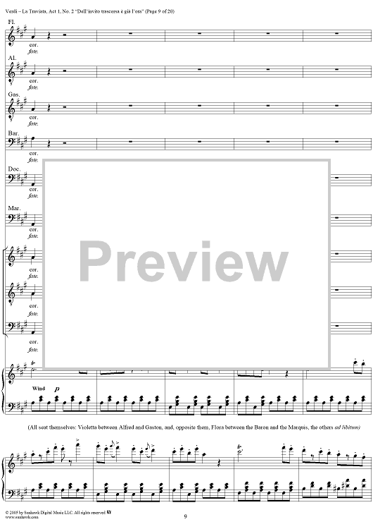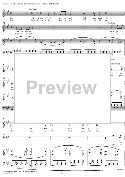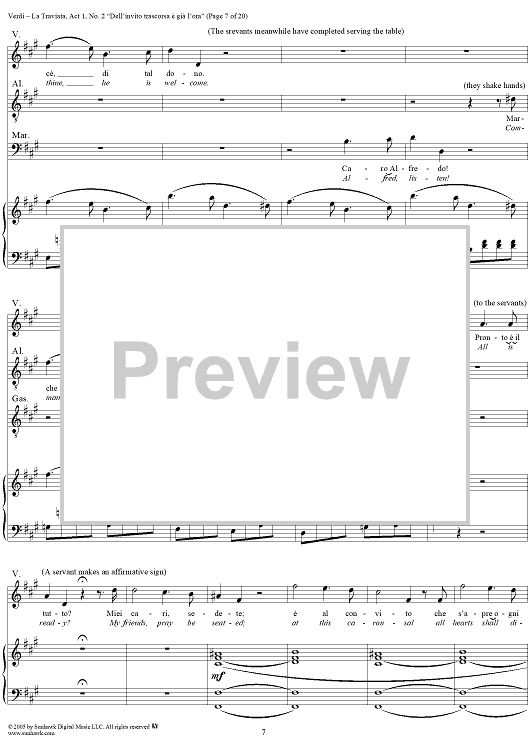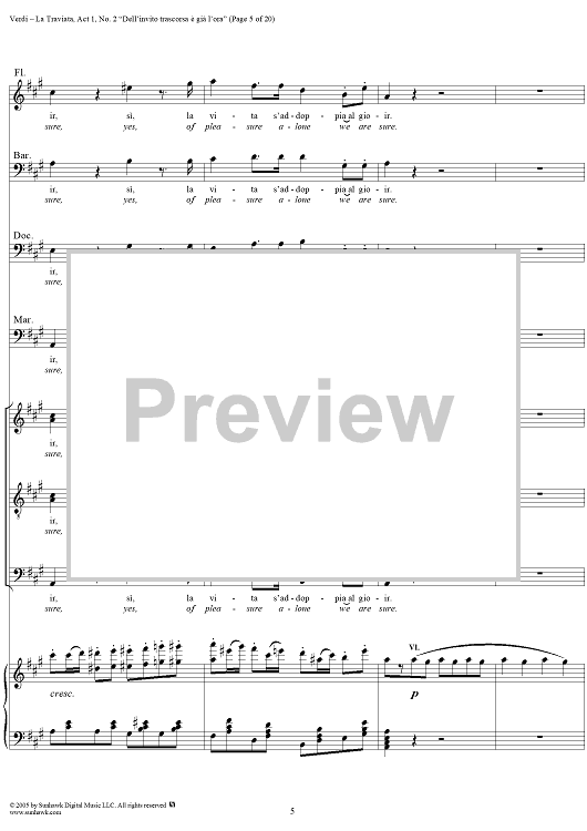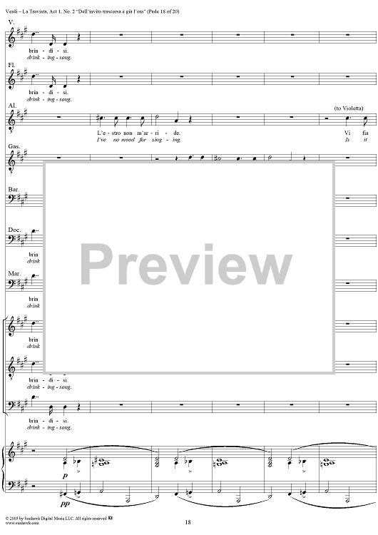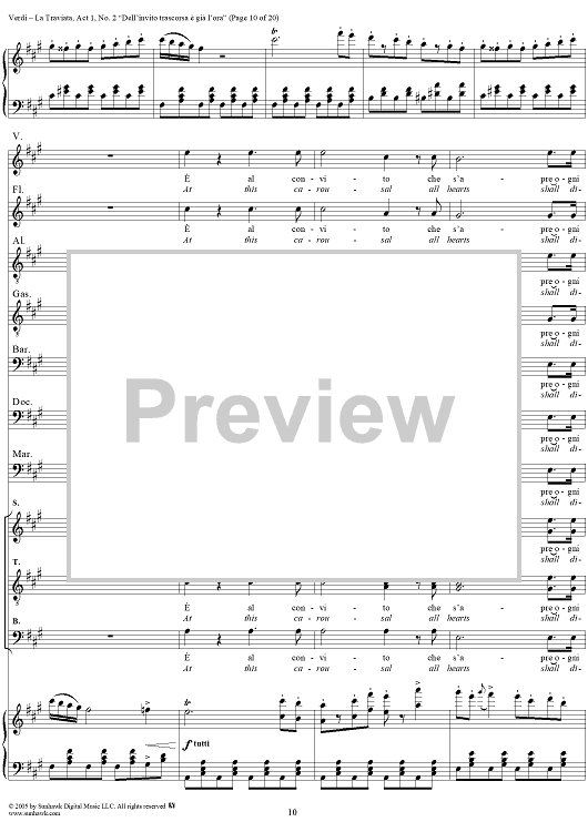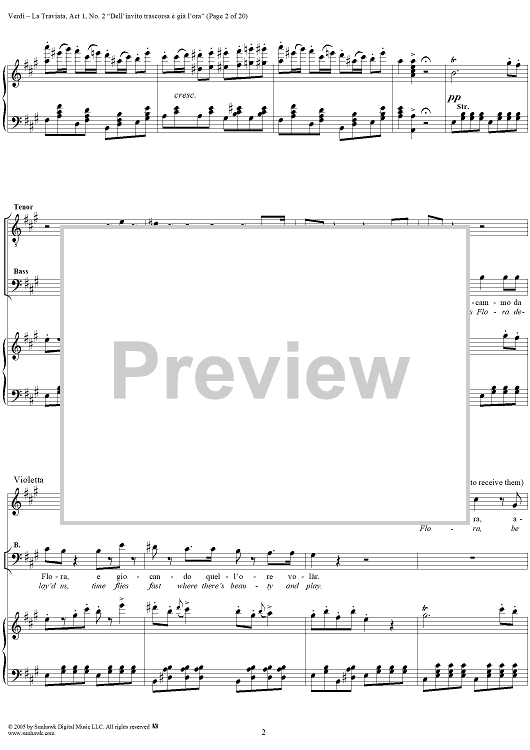 Digital Sheet Music for La Traviata, Act 1, No. 2, Introduction. "Dell'invito trascorsa è già l'ora" by Giuseppe Verdi scored for Vocal Score; id:304471
