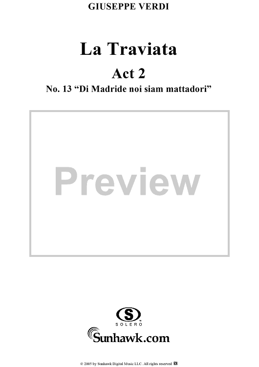 "La Traviata, Act 2, No. 13, Chorus of Matadors. "Di Madride noi siam mattadori"" Sheet Music by Giuseppe Verdi