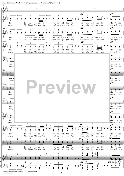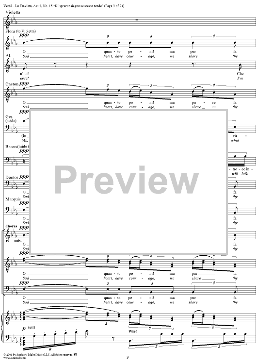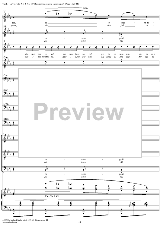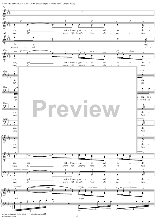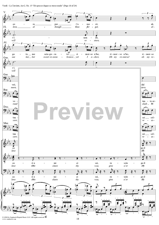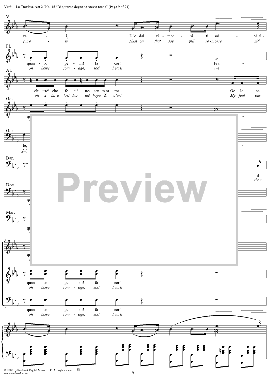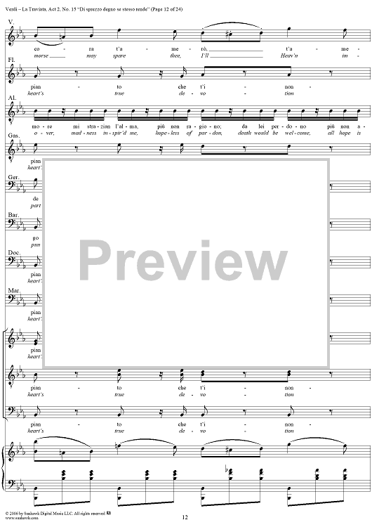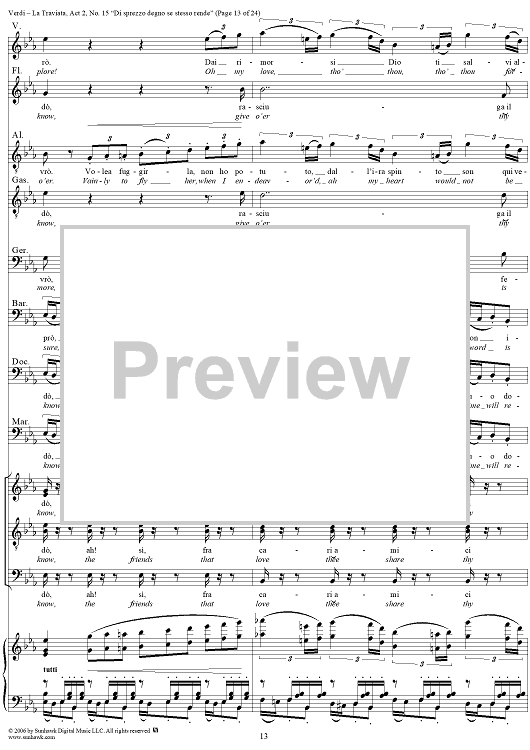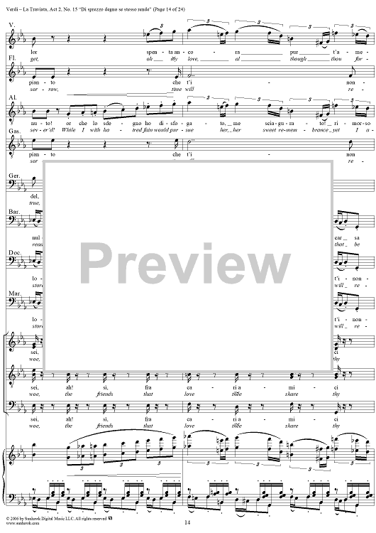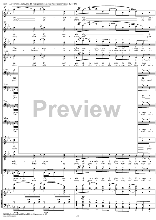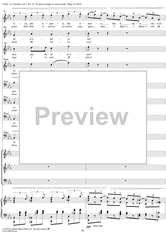 Digital Sheet Music for La Traviata, Act 2, No. 15, Octet and Chorus. "Di sprezzo degno se stesso rende" by Giuseppe Verdi scored for Vocal Score; id:304484