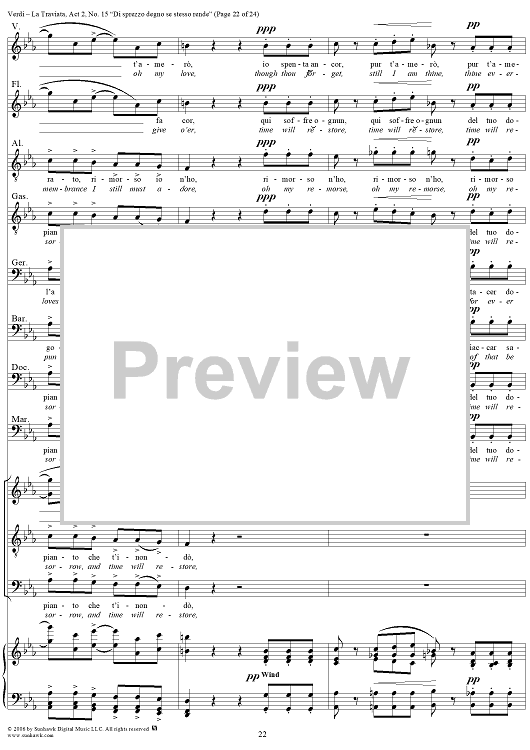 "La Traviata, Act 2, No. 15, Octet and Chorus. "Di sprezzo degno se stesso rende"" Sheet Music by Giuseppe Verdi