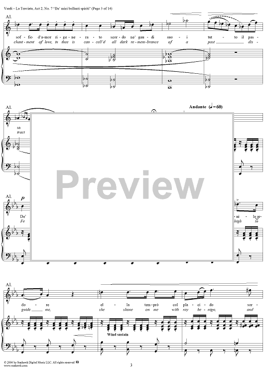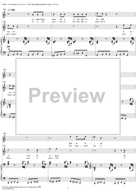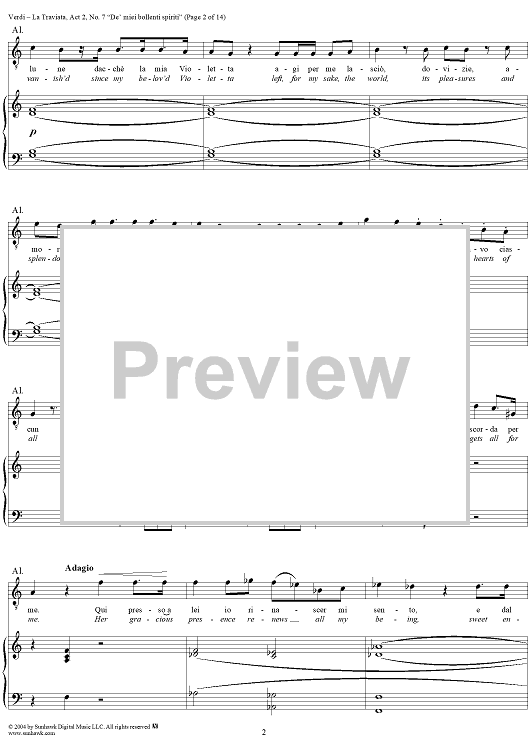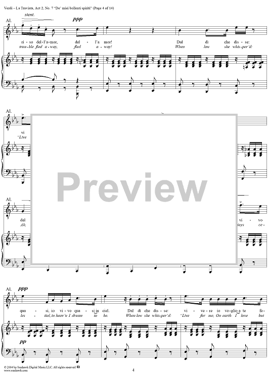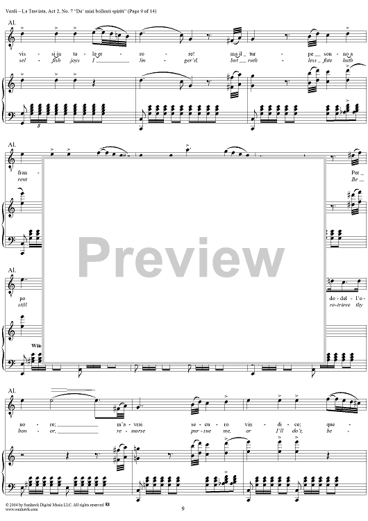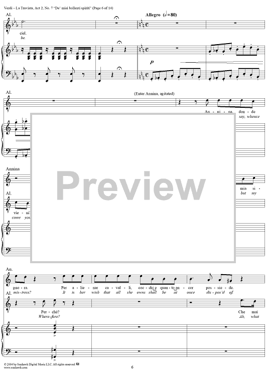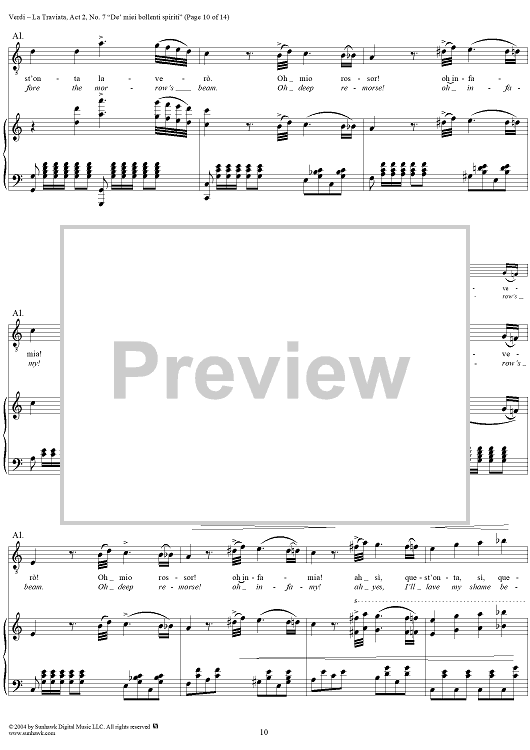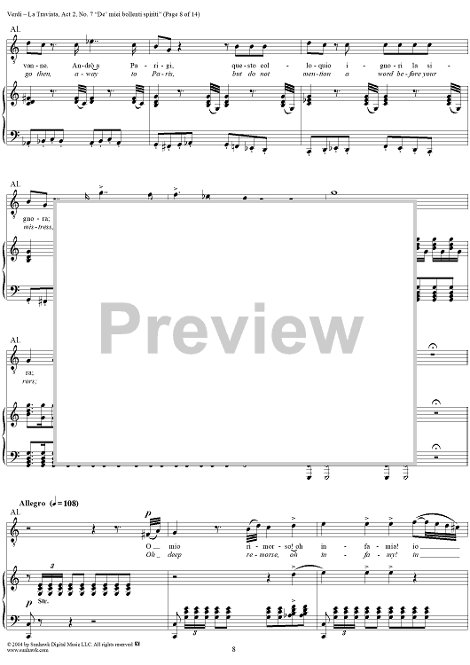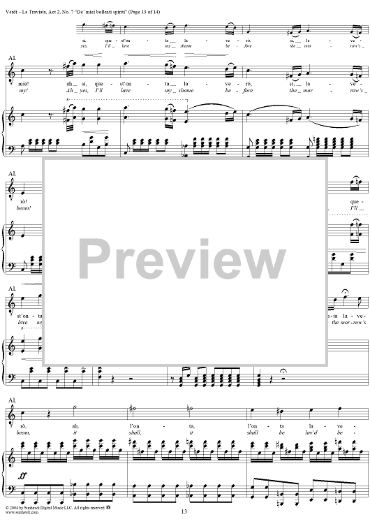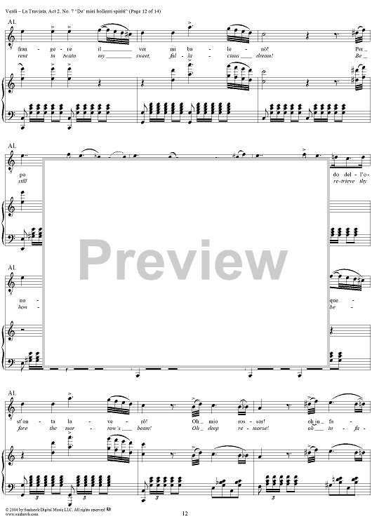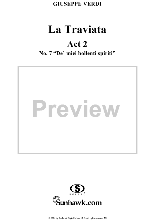 Digital Sheet Music for La Traviata, Act 2, No. 7, Recit. and Air. "De' miei bollenti spiriti" by Giuseppe Verdi scored for Vocal Score; id:304476