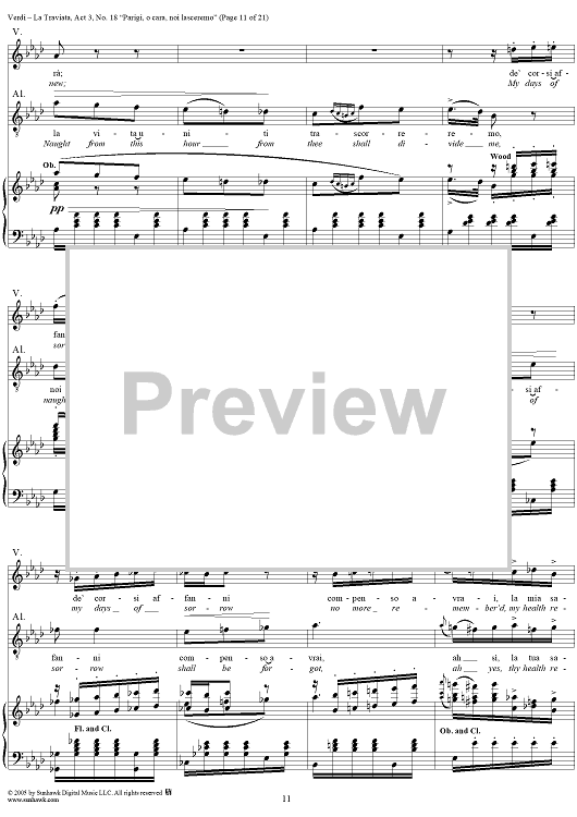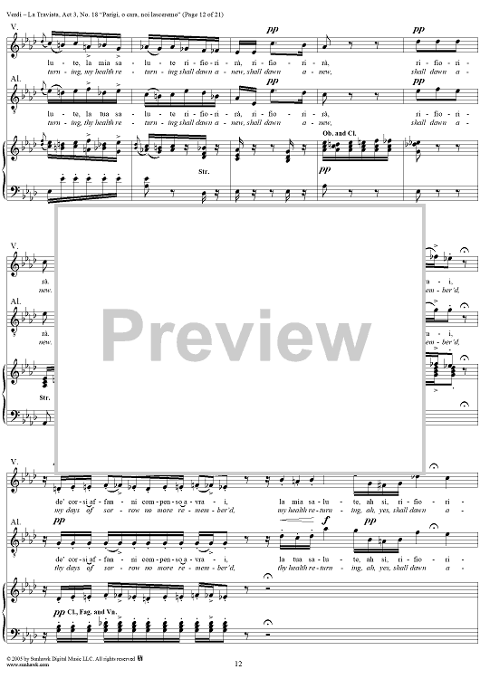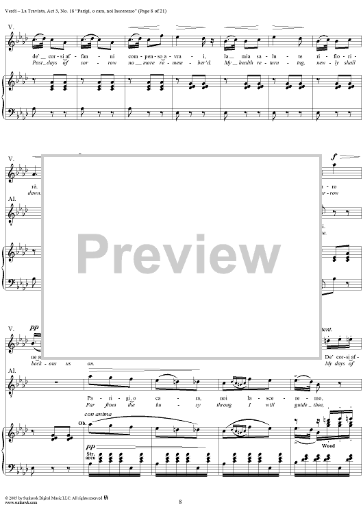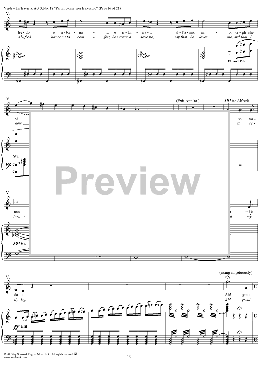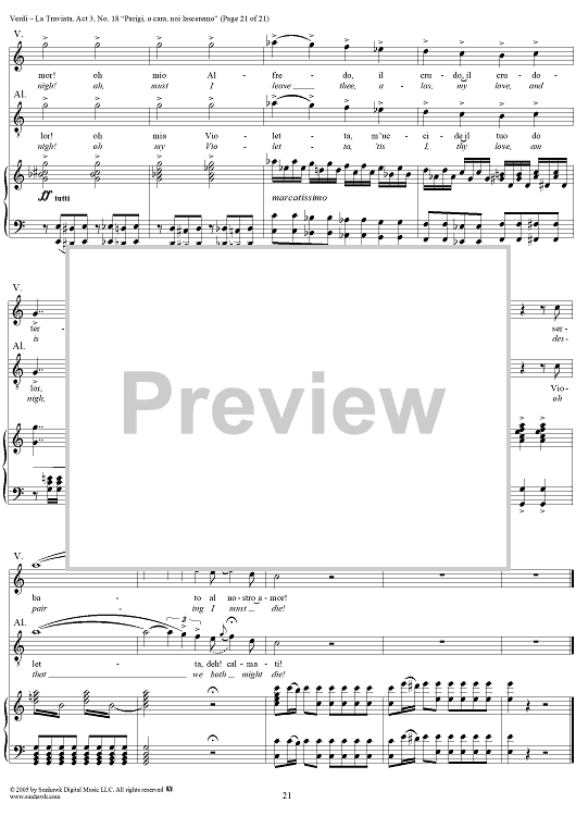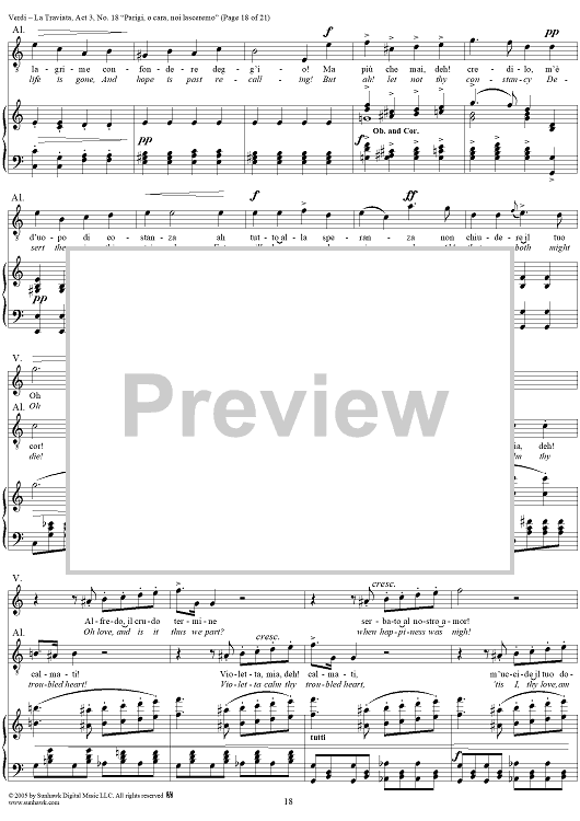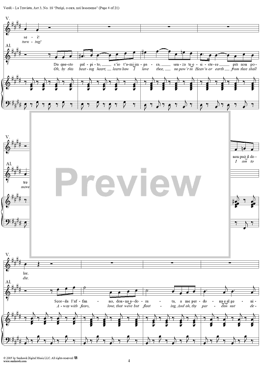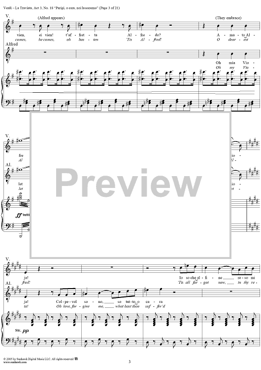 Digital Sheet Music for La Traviata, Act 3, No. 18, Recit. and Duet. "Parigi, o cara, noi lasceremo" by Giuseppe Verdi scored for Vocal Score; id:304487