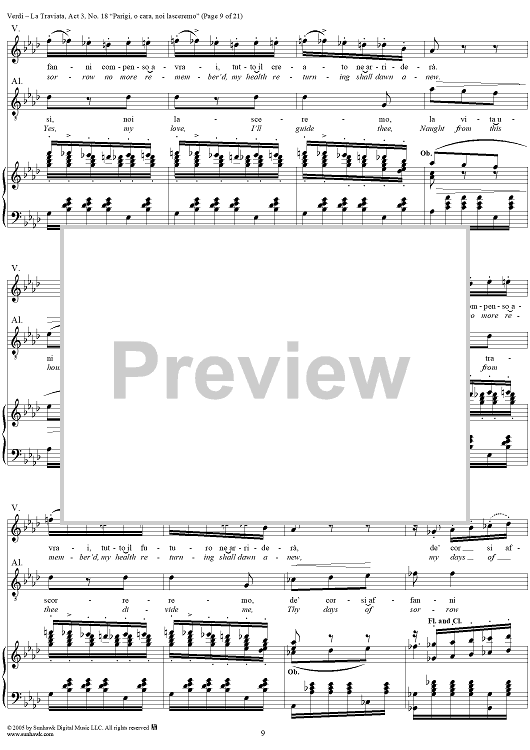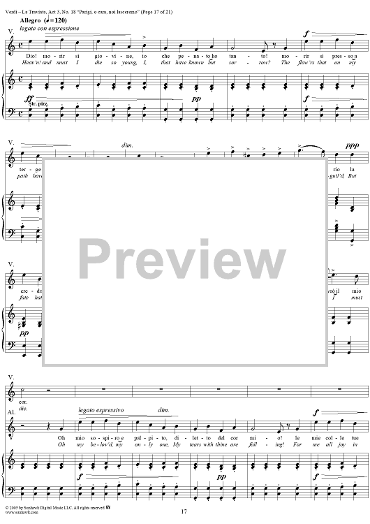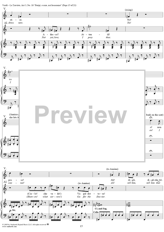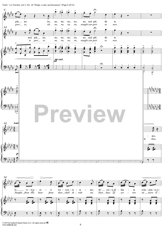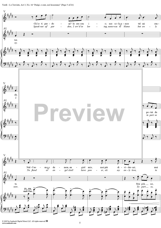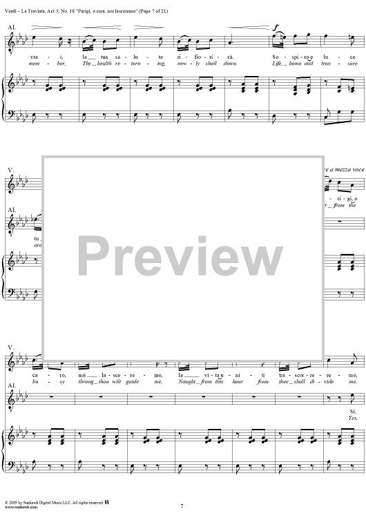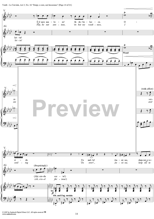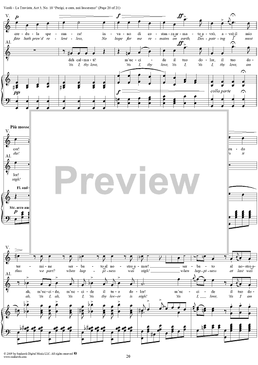 Digital Sheet Music for La Traviata, Act 3, No. 18, Recit. and Duet. "Parigi, o cara, noi lasceremo" by Giuseppe Verdi scored for Vocal Score; id:304487