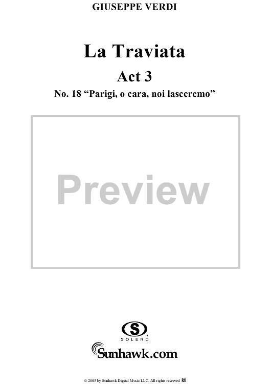 "La Traviata, Act 3, No. 18, Recit. and Duet. "Parigi, o cara, noi lasceremo"" Sheet Music by Giuseppe Verdi