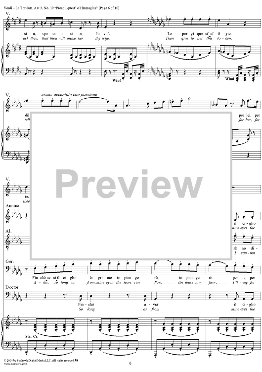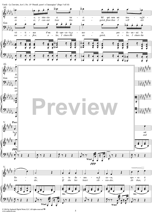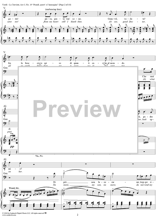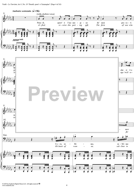 Digital Sheet Music for La Traviata, Act 3, No. 19, Finale. "Prendi, quest' è l'immagine" by Giuseppe Verdi scored for Vocal Score; id:304488