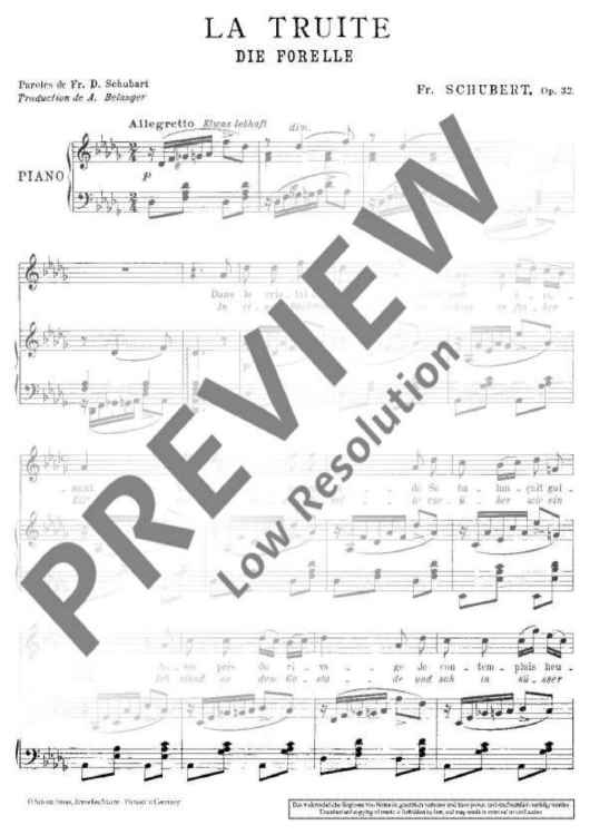Digital Sheet Music for La truite in D major by Franz Schubert scored for Voice And Piano; id:477604