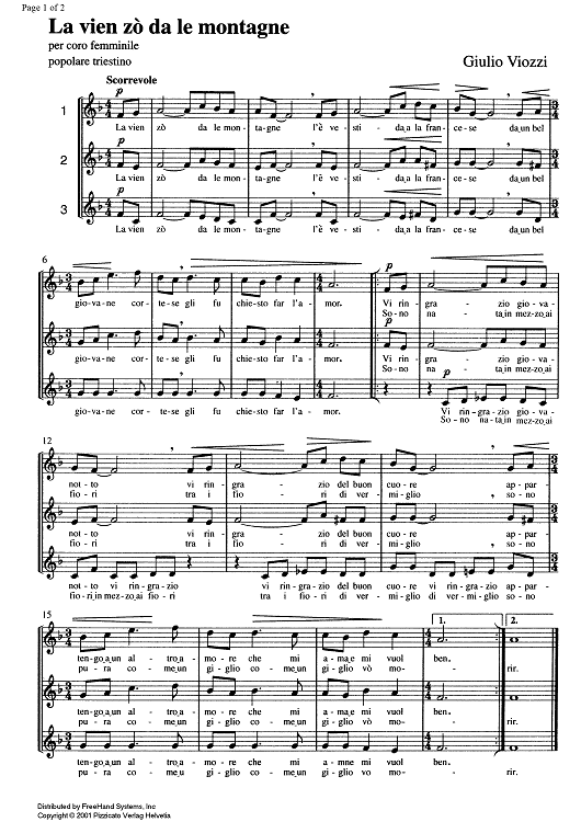 "La vien zò da le montagne" Sheet Music by Giulio Viozzi