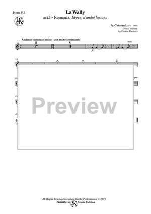 Digital Sheet Music for La Wally - act 1 - Romanza: "Ebben, n'andro lontana" - Horn in F 2 by Alfredo Catalani, Franco Pisciotta scored for Orchestra; id:505540