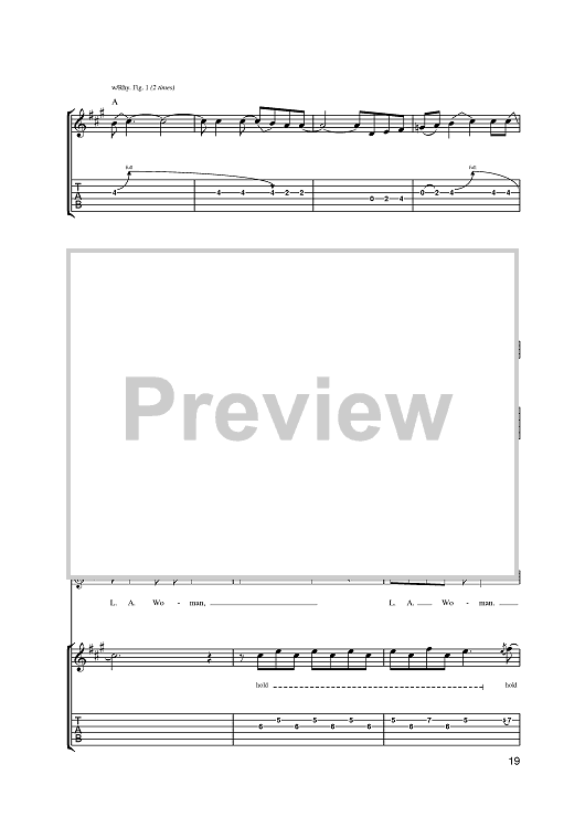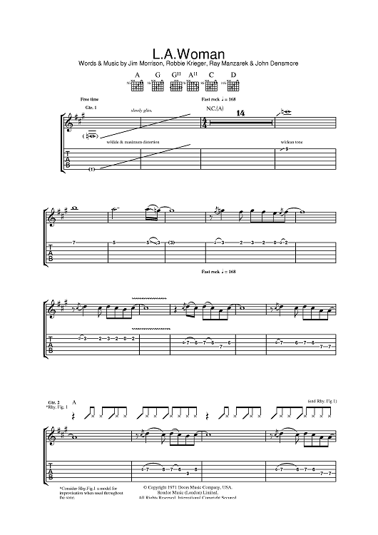 Digital Sheet Music for L.A. Woman by The Doors, Jim Morrison, Robbie Krieger, John Densmore, Ray Manzarek scored for Guitar Tab; id:392089