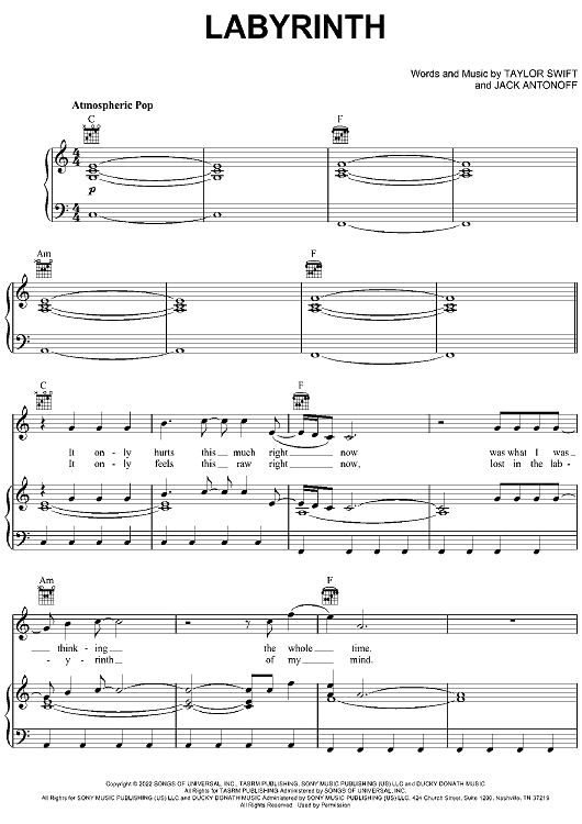 Digital Sheet Music for Labyrinth by Taylor Swift, Jack Antonoff scored for Piano/Vocal/Chords; id:498167