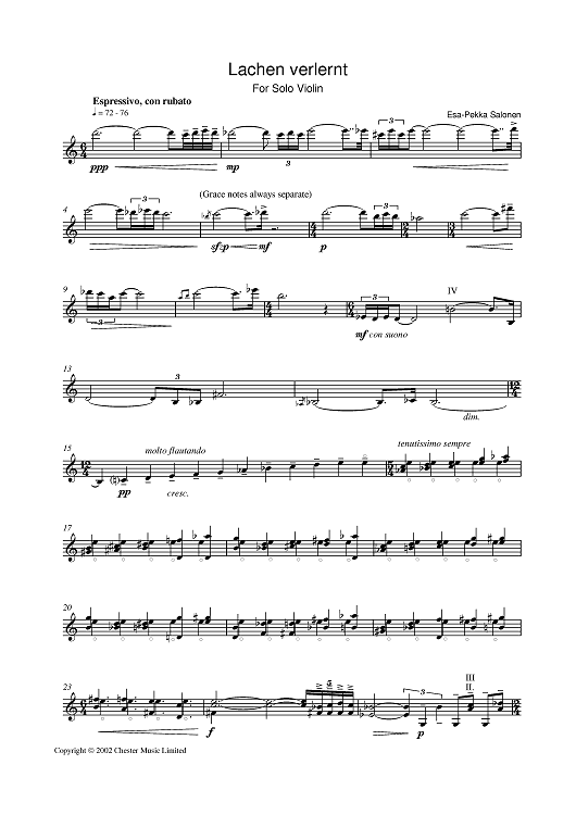 "Lachen Verlernt" Sheet Music by Esa-Pekka Salonen